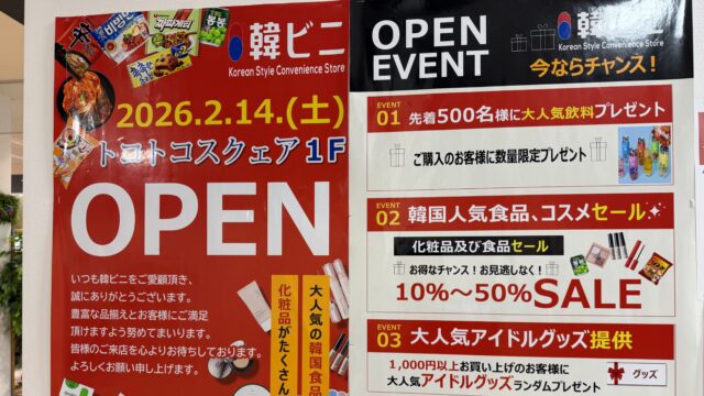 【所沢市】2月14日(土)、トコトコスクエアに「韓ビニ」がオープンしました!