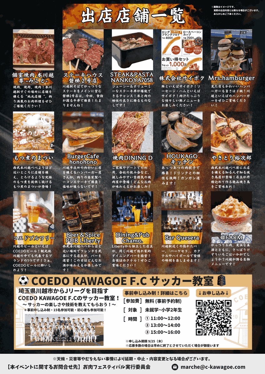 | イベント名 | お肉フェスティバル@ 西武本川越ペペ with COEDO KAWAGOE F.C |