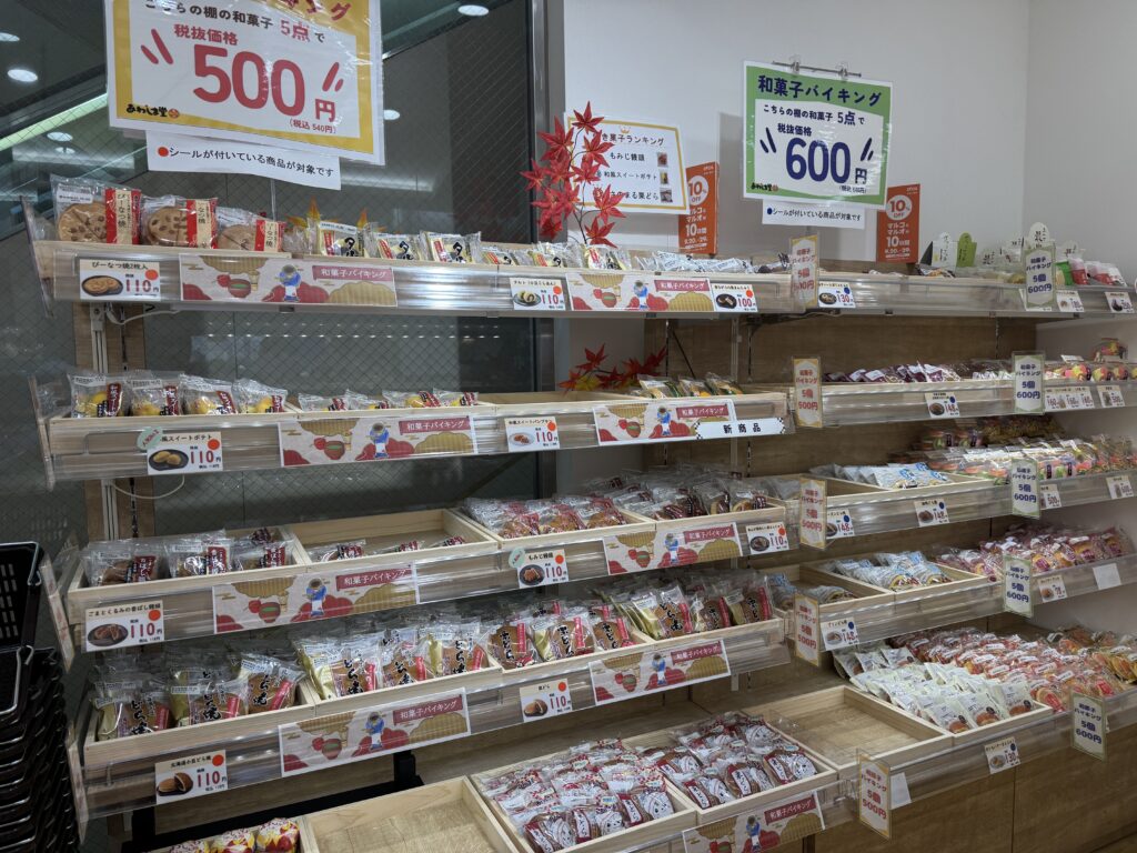 特に目を引いたのは、よりどりまとめ買いの和菓子バイキングコーナーです。