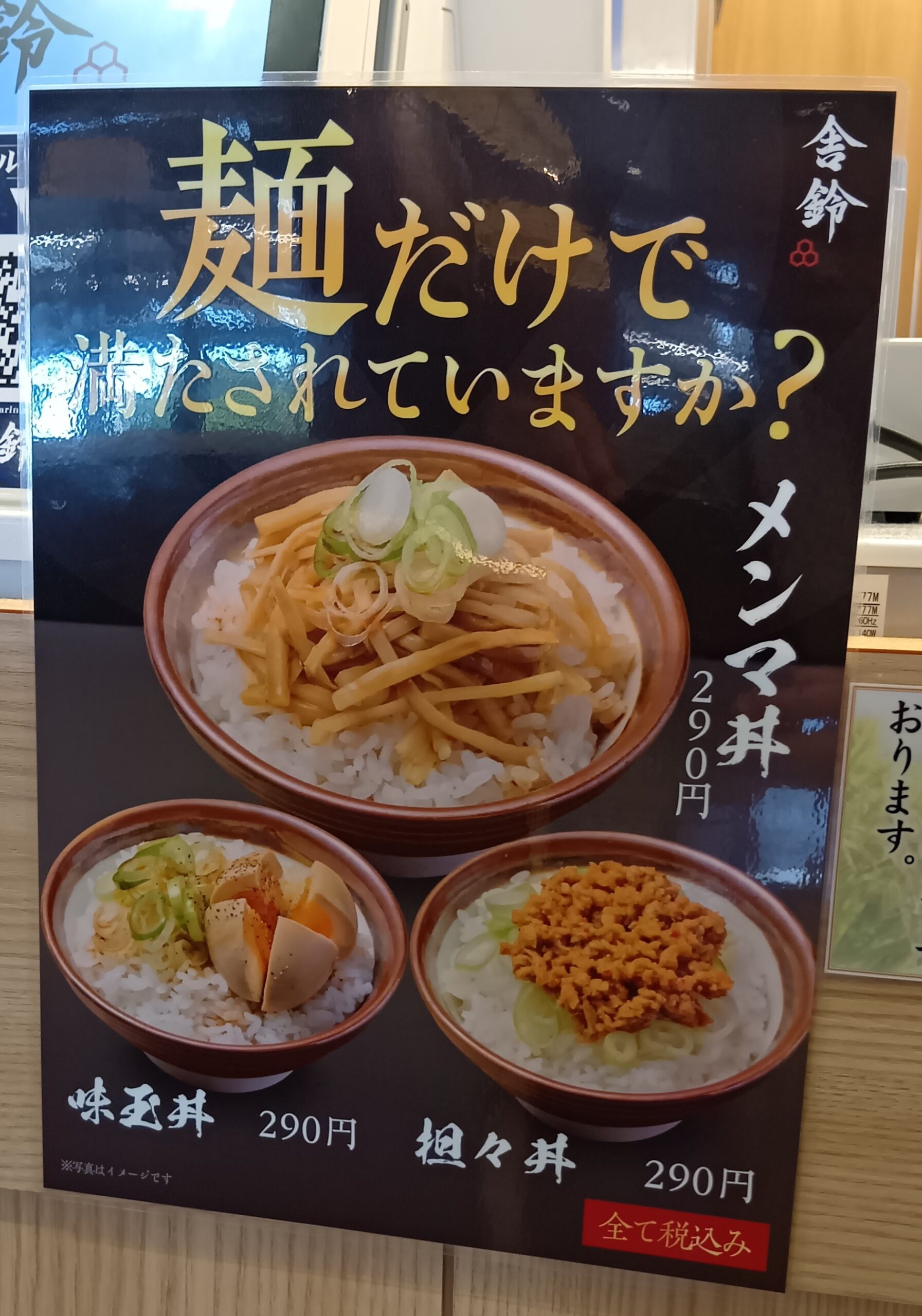 メンマ丼 味玉丼 坦々丼 各290円