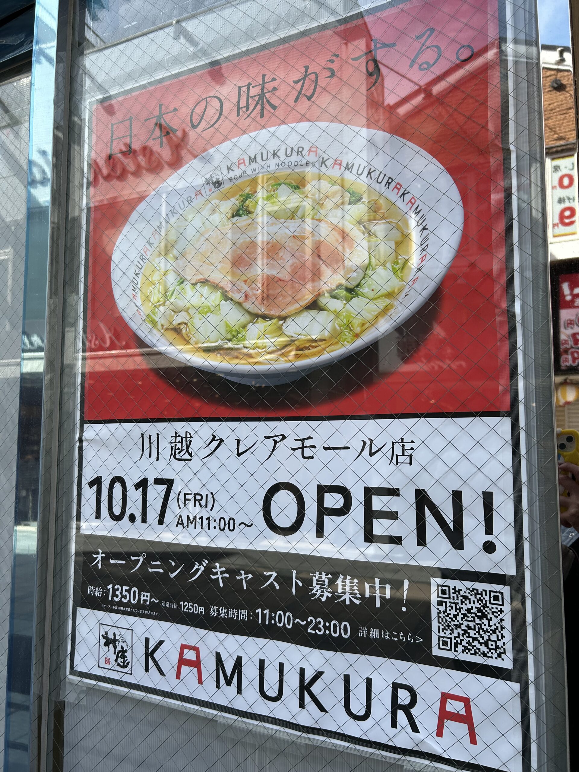 川越と言えば、クレアモールに天然とんこつラーメンの「一蘭」、二郎系の「ラーメン川越田田」がオープンしたばかり!