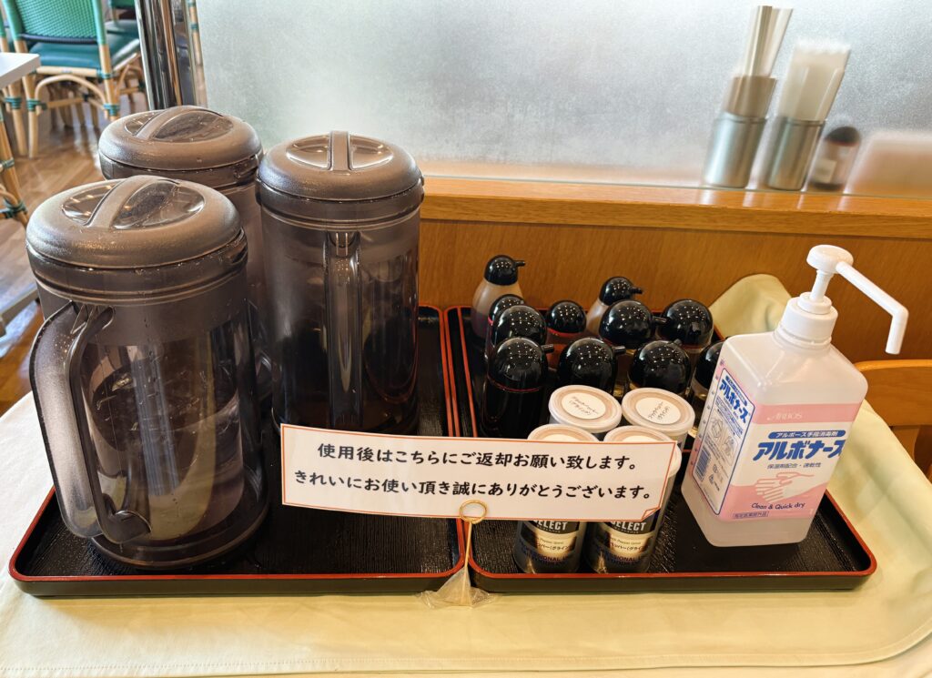 お水のおかわりと調味料はセルフサービスです。