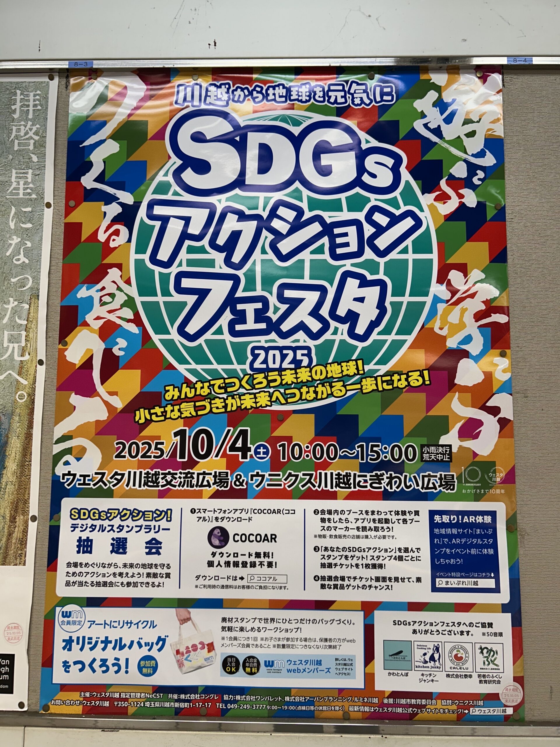 今回はウェスタ川越 交流広場 & ウニクス川越 にぎわい広場で開催される『SDGsアクションフェスタ2025』の情報です。