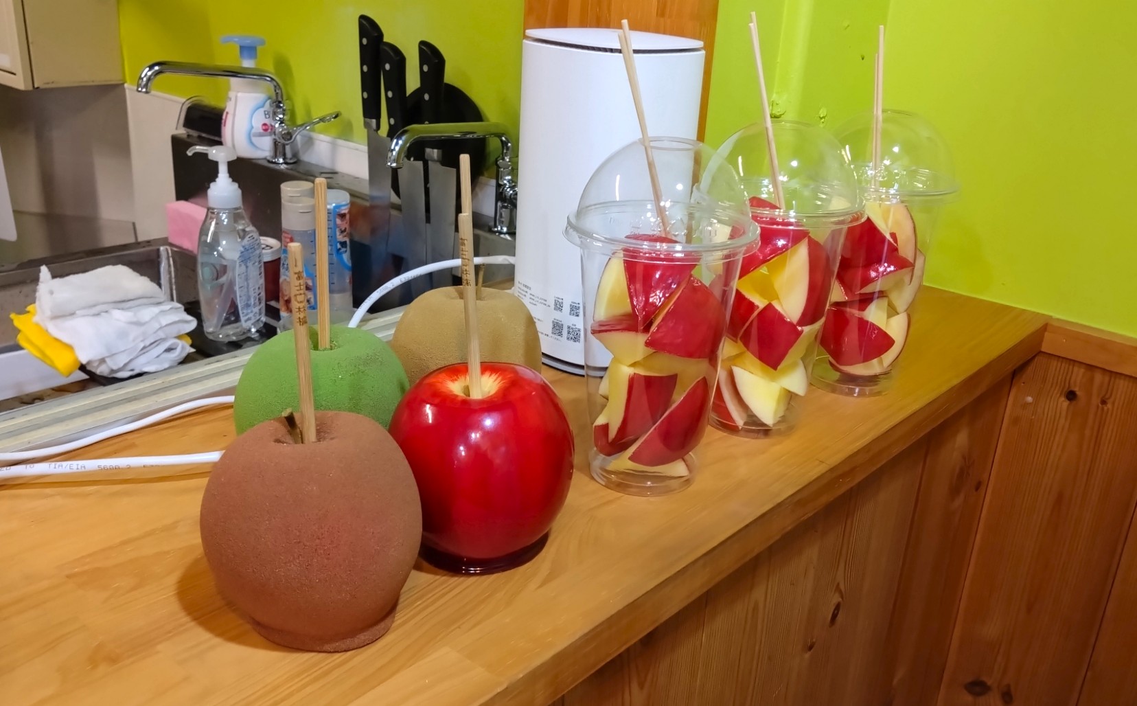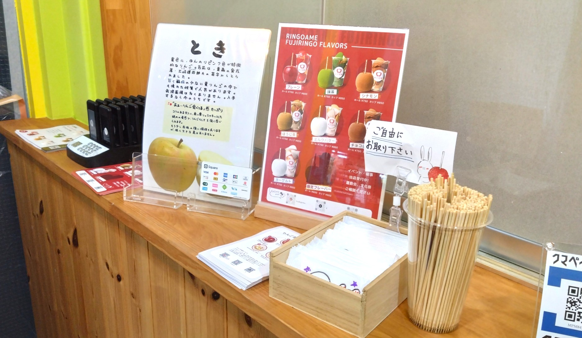 カウンターには、りんご飴のサンプルが並んでいました!どれもかわいい♡