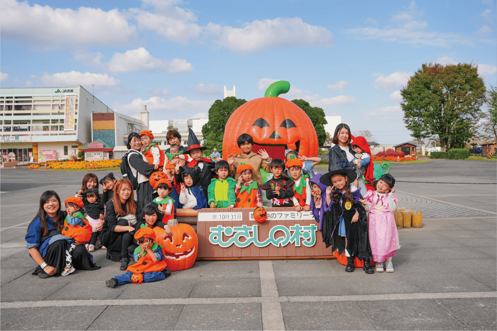 むさしの村のハロウィンイベント「むさしの村deハロウィン」では、お子様が全身仮装で遊びに来ると、嬉しいプレゼントがもらえます!