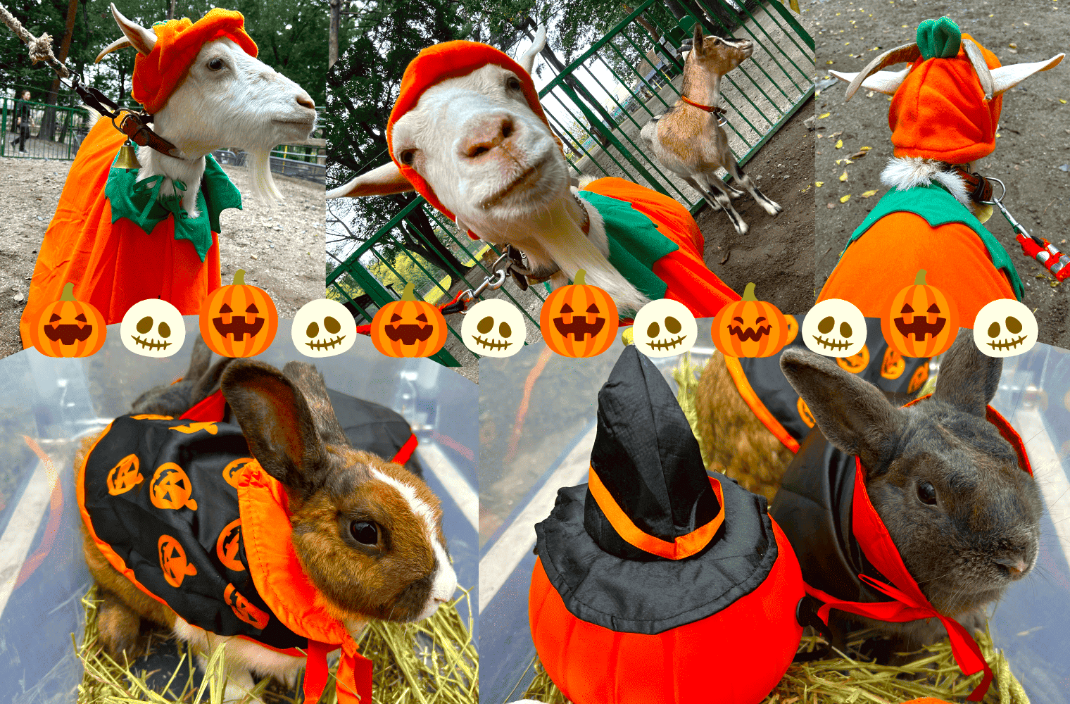 期間限定でハロウィンコスチュームをまとった、やぎさんうさぎさん(状況によりハリネズミに変更の場合あり)との特別なふれあいに癒やされてください♪