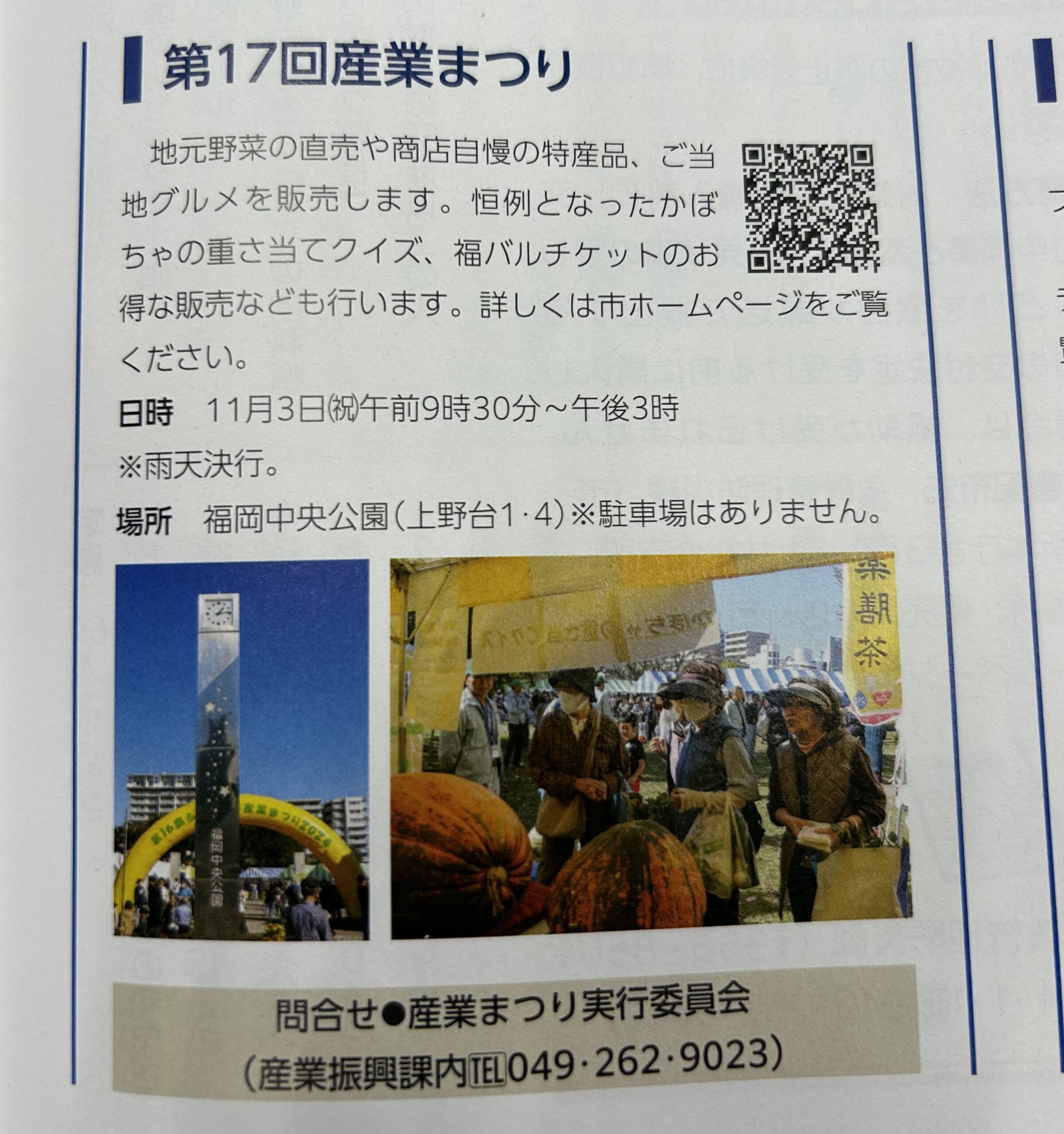 「第17回ふじみ野市産業まつり」が11月3日(月・祝)に開催されます。