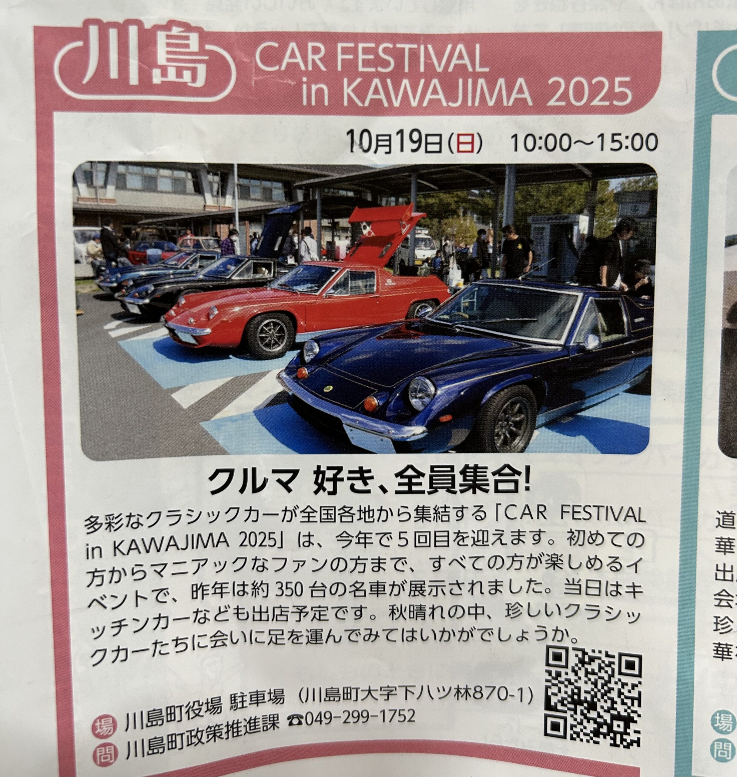 今回は、川島町で開催の「CAR FESTIVAL in KAWAJIMA 2025」の情報です。