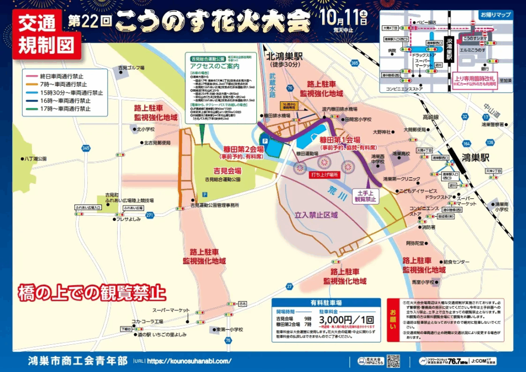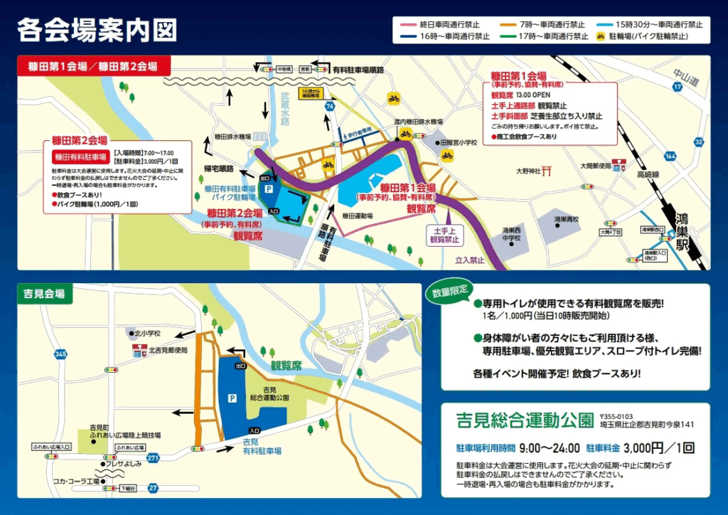 当日は会場周辺、鴻巣駅周辺で交通規制が行われます。