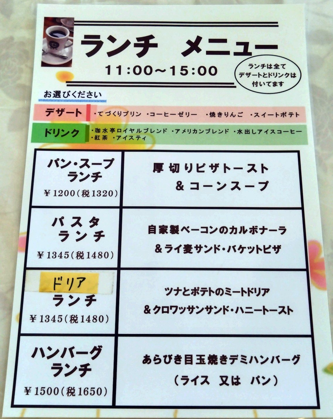 ※価格、メニューが変更されている可能性がありますので、参考程度にお考えください。