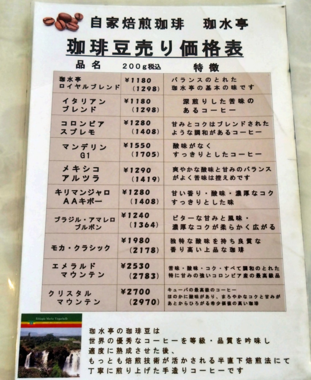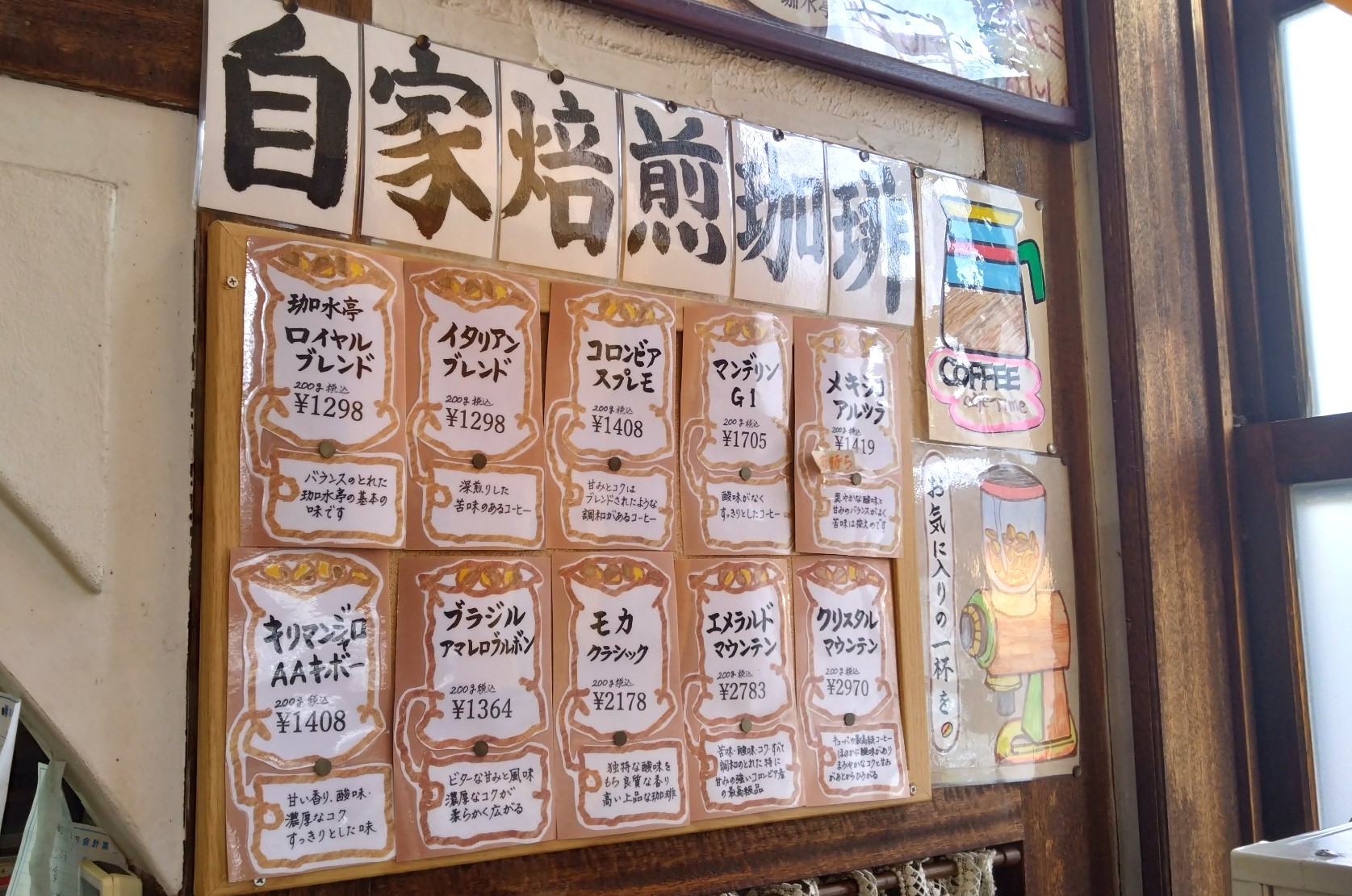 テイクアウトできる自家焙煎珈琲の豆売りもありました。