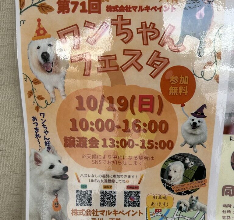 今回は、株式会社マルキペイントで開催される「ワンちゃんフェスタ」の情報です。