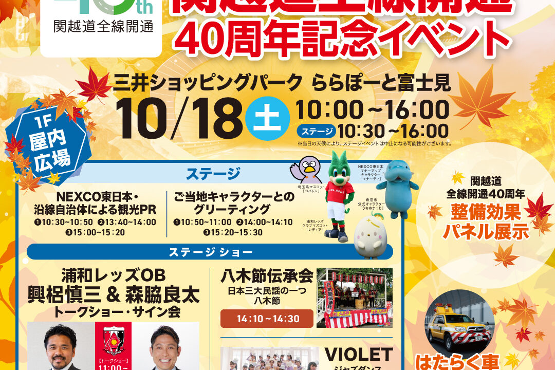NEXCO東日本 関越道全線開通40周年記念イベントは10月18日の開催となります。