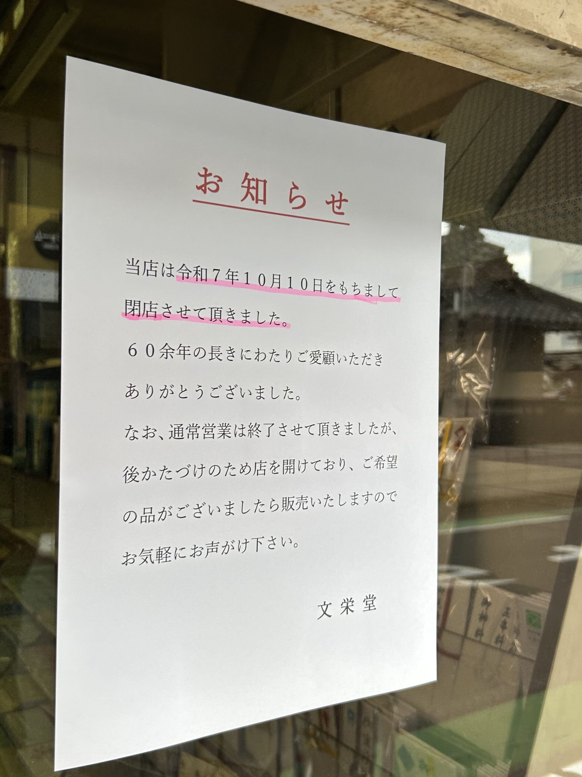 「文栄堂」令和7年10月10日を持ちまして閉店となりました!