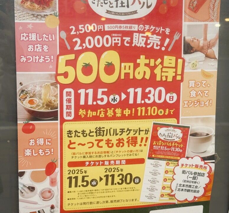 | 内容 | 事前に購入したチケットを参加店で1枚500円の金券として使えます |