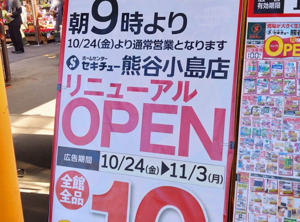 ついに、熊谷市小島にあるホームセンター「セキチュー熊谷小島店」が、10月23日(木)にリニューアルオープンしました!