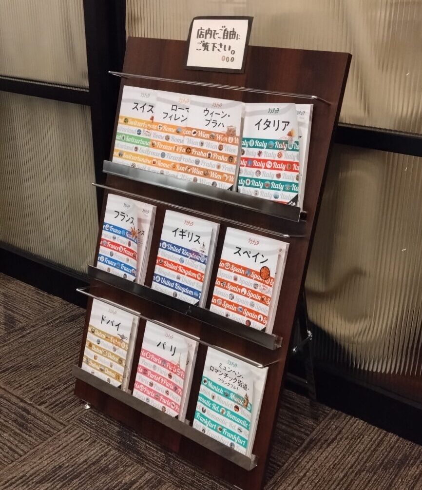 カフェの一角にはヨーロッパ旅行に関する本が自由に読めるように用意されていて、そのセレクトにもこだわりを感じます。