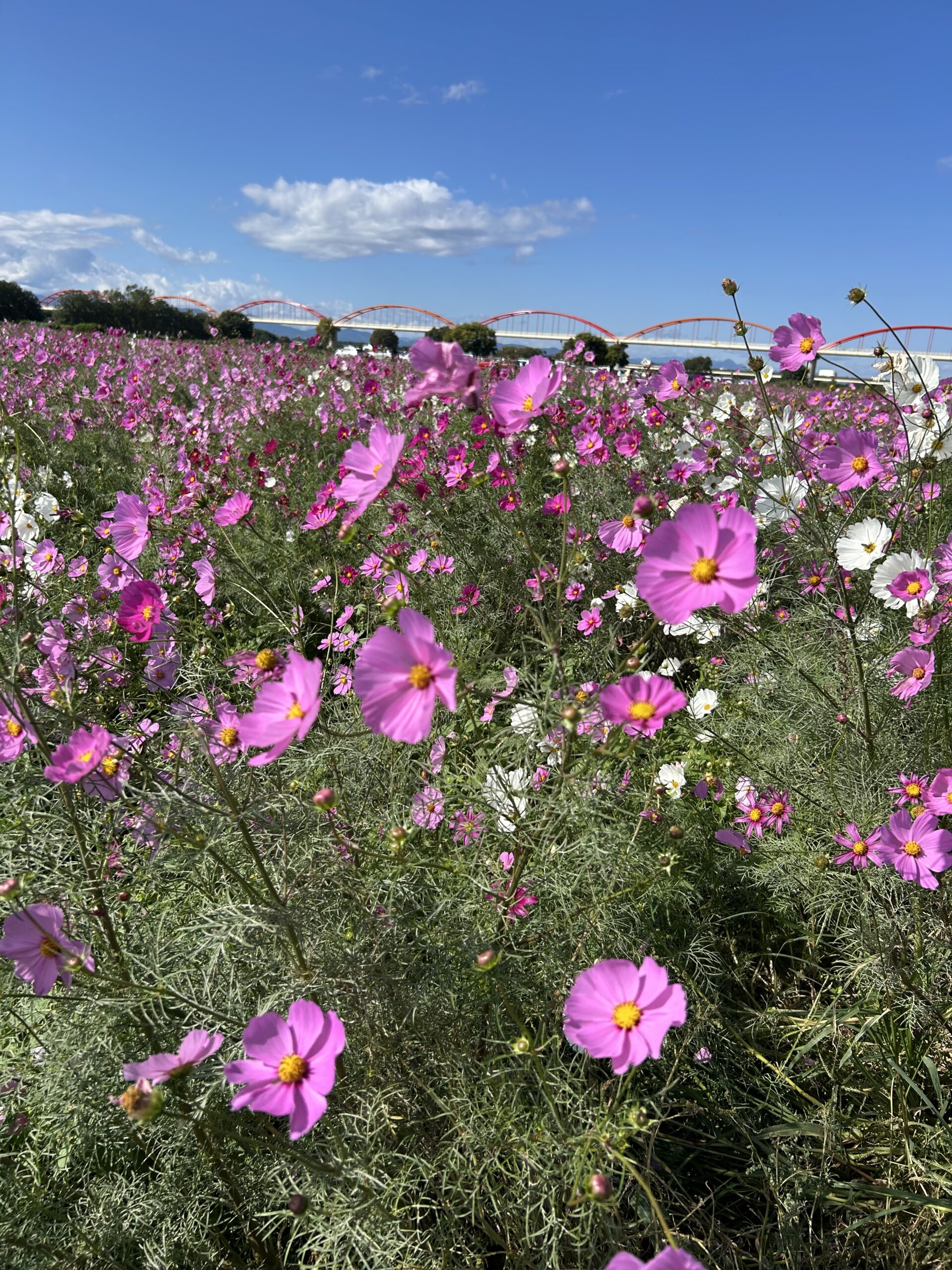 今回は、「コスモスアリーナふきあげ」周辺に咲くコスモスの情報です。