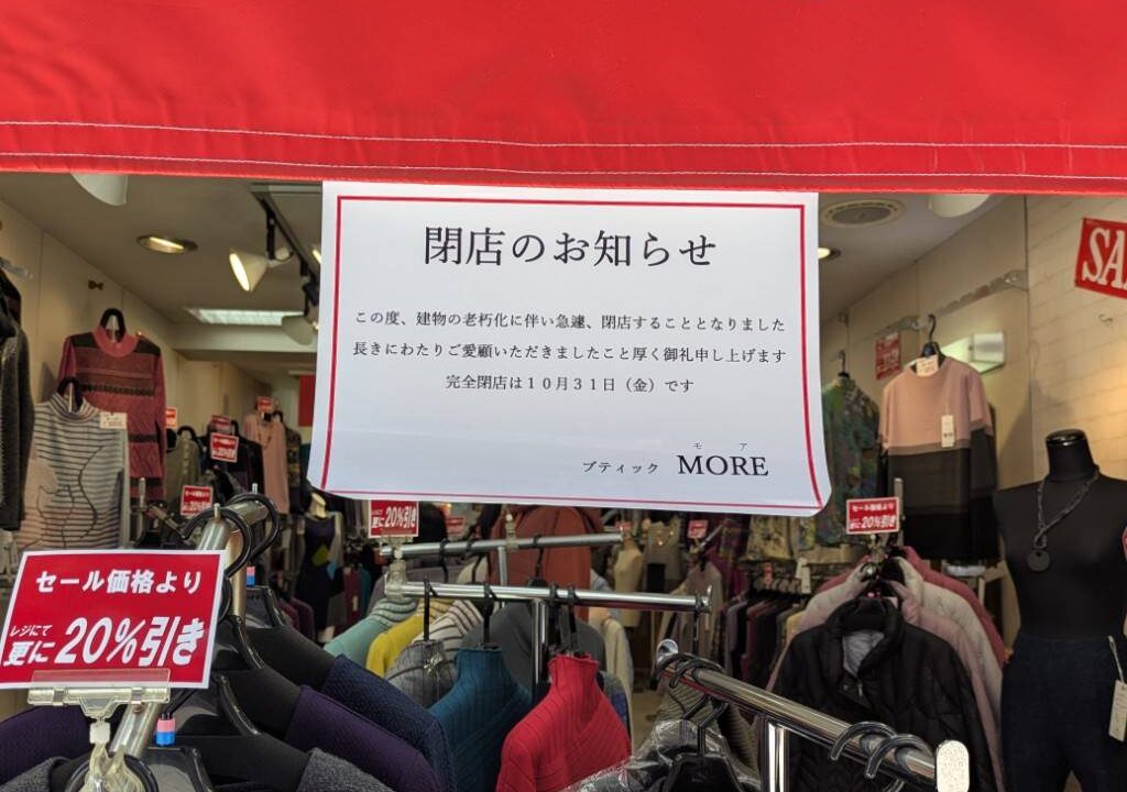 長年営業してきたファッション店が、建物の老朽化により閉店することがわかりました。