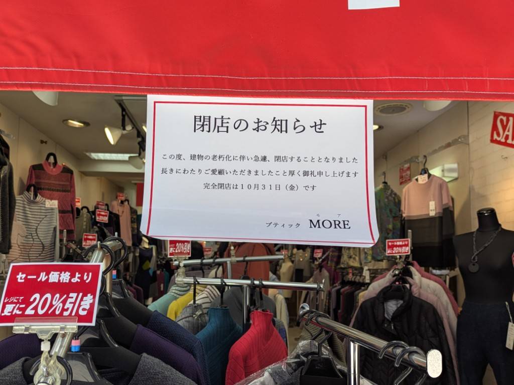長年営業してきたファッション店が、建物の老朽化により閉店することがわかりました。