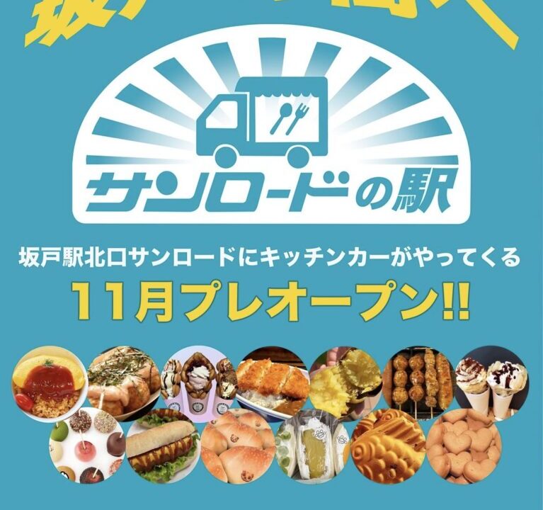 今回は坂戸駅北口から徒歩3分、北口サンロードにキッチンカーがやってくる「サンロードの駅」が11月にプレオープンするそうです。