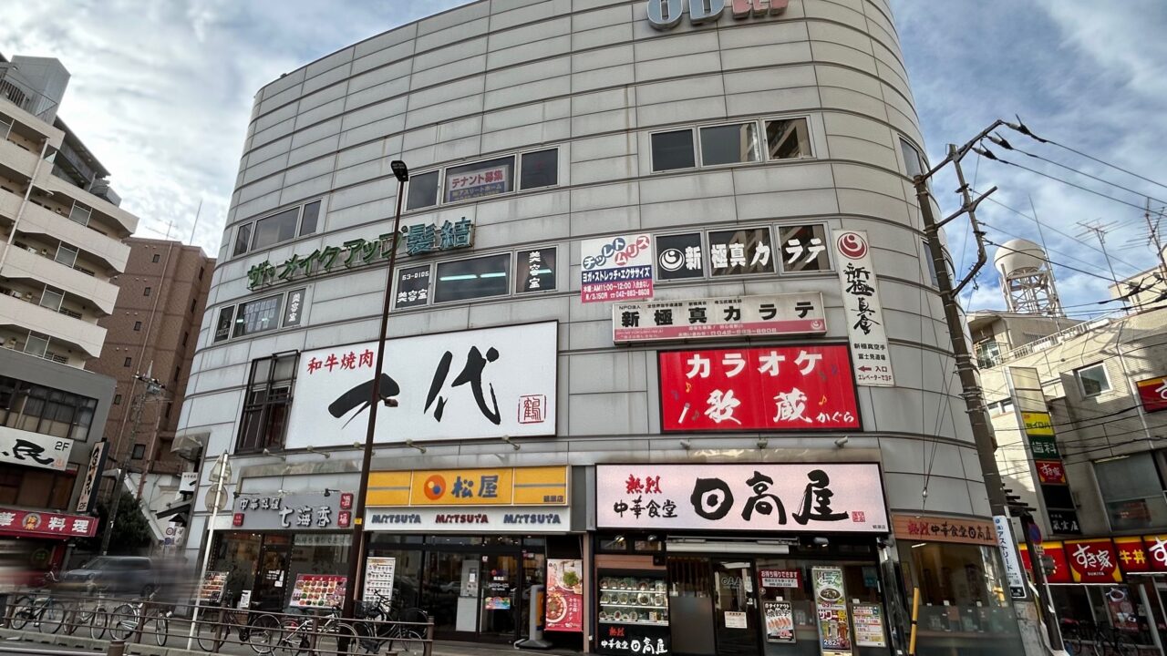 日高屋や松屋、和牛焼肉 一代などが入るビル1階にあります。