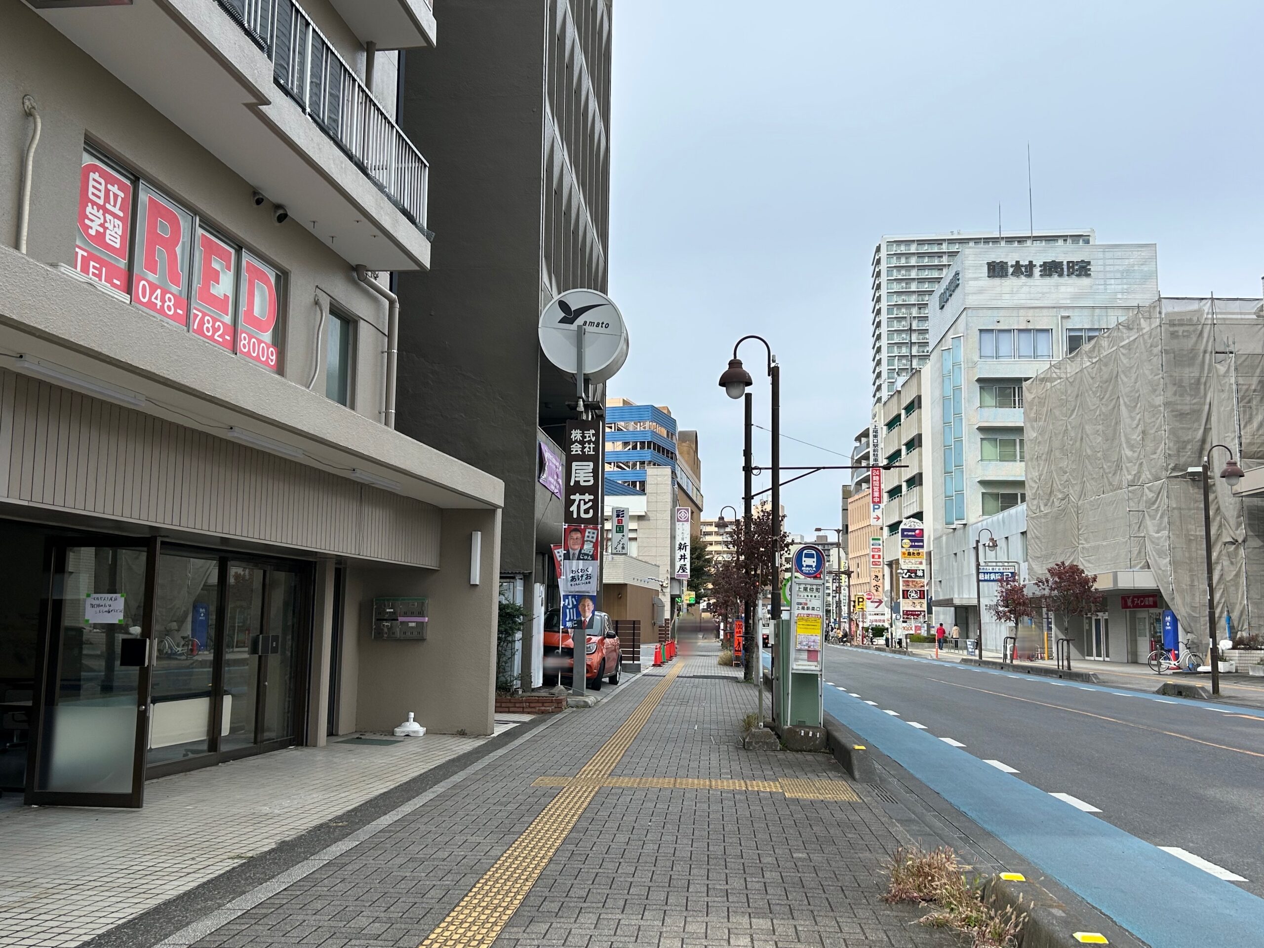 県道164号線沿い、「自立学習塾RED 上尾教室」が入る建物1階。