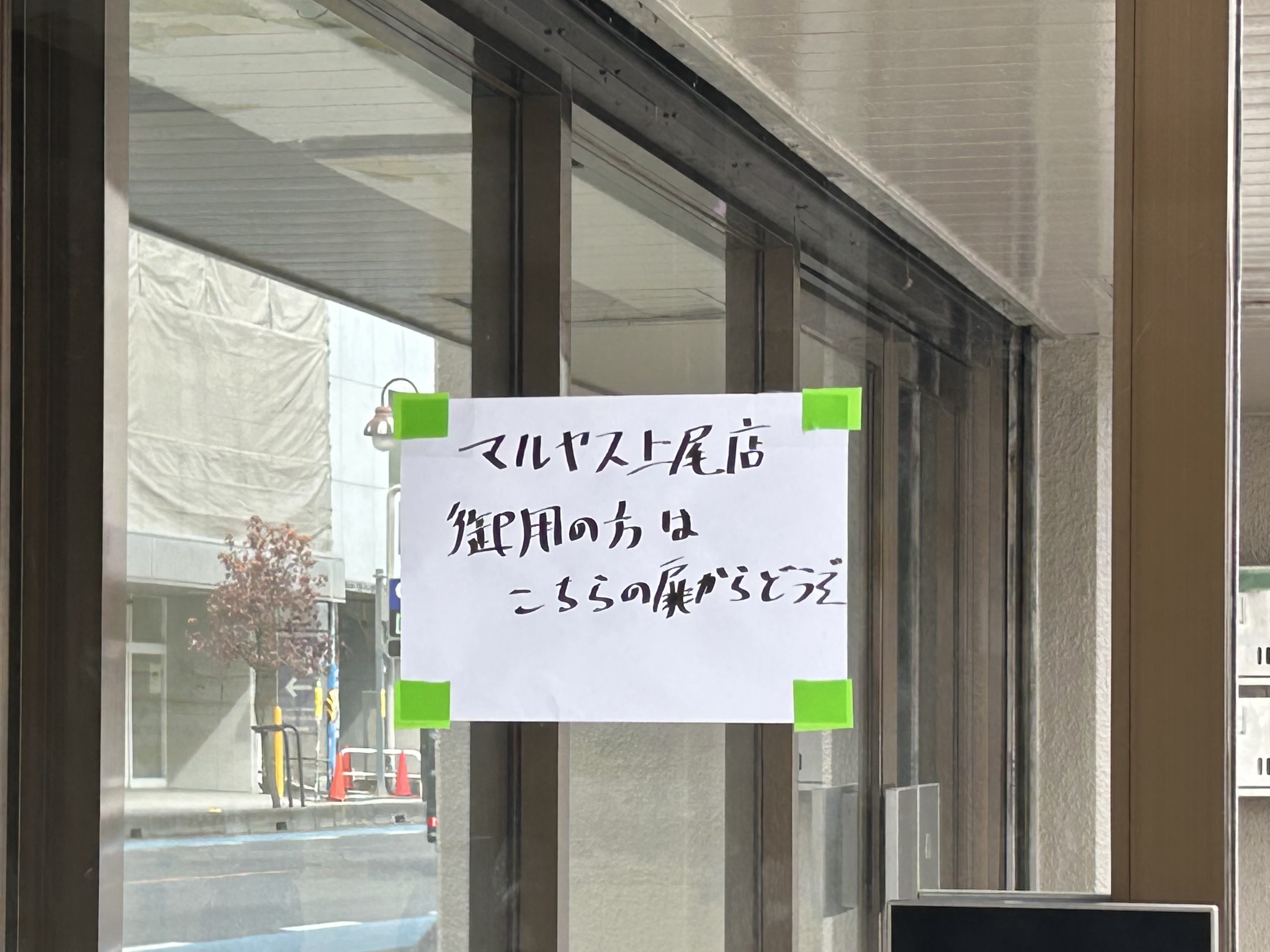 ※扉に「マルヤス上尾店」と貼ってあったのでこちらの場所で合ってると思います!