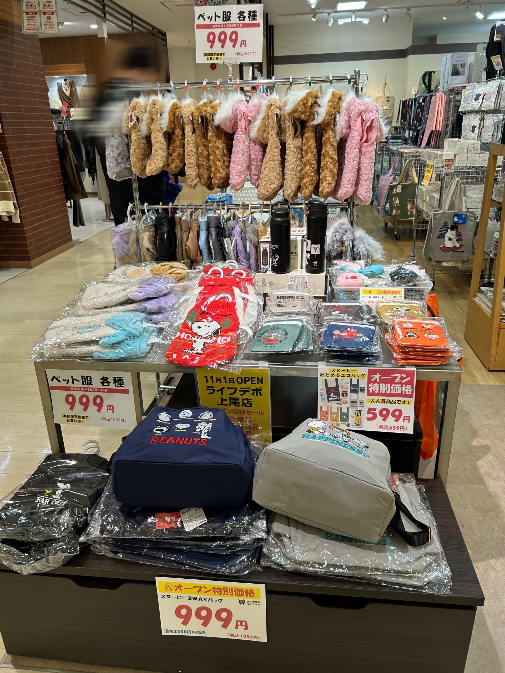 ワンちゃんの可愛い洋服や、スヌーピーの雑貨、靴などがありましたよ。