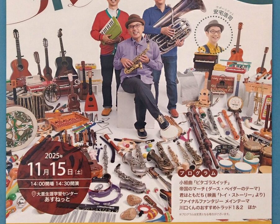 今回は熊谷市「大里生涯学習センターあすねっと」にて、ユニークなインストゥルメンタル・バンド「栗コーダーカルテット」のコンサートが開催されます!