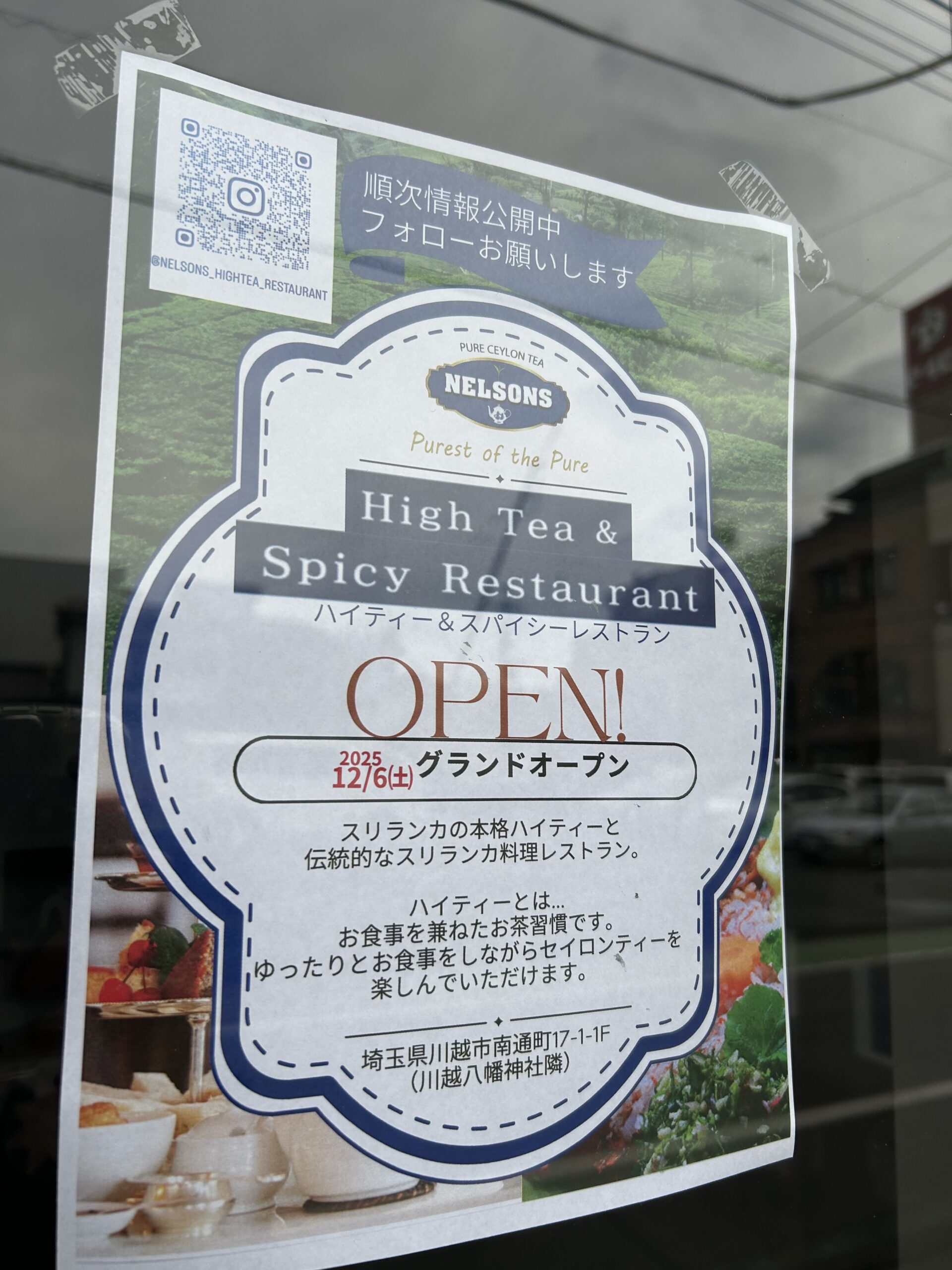 川越にオープンする「ハイティー&スパイシーレストラン」の情報でした。