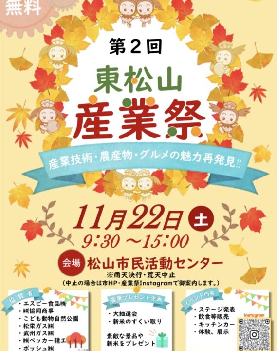 ※雨天決行・荒天中止(中止の場合はHP・産業祭Instagramでご案内します)