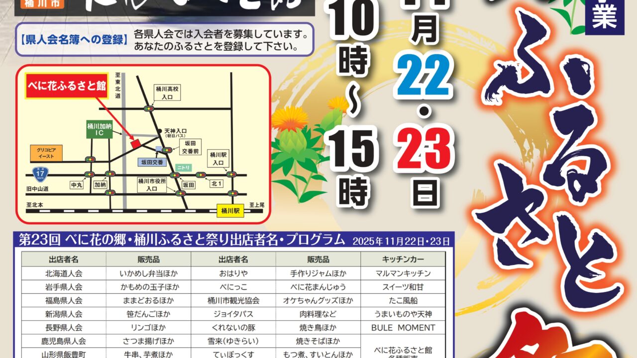 第23回べに花の郷・桶川ふるさと祭りは11月22日と23日の2日間の開催となります。