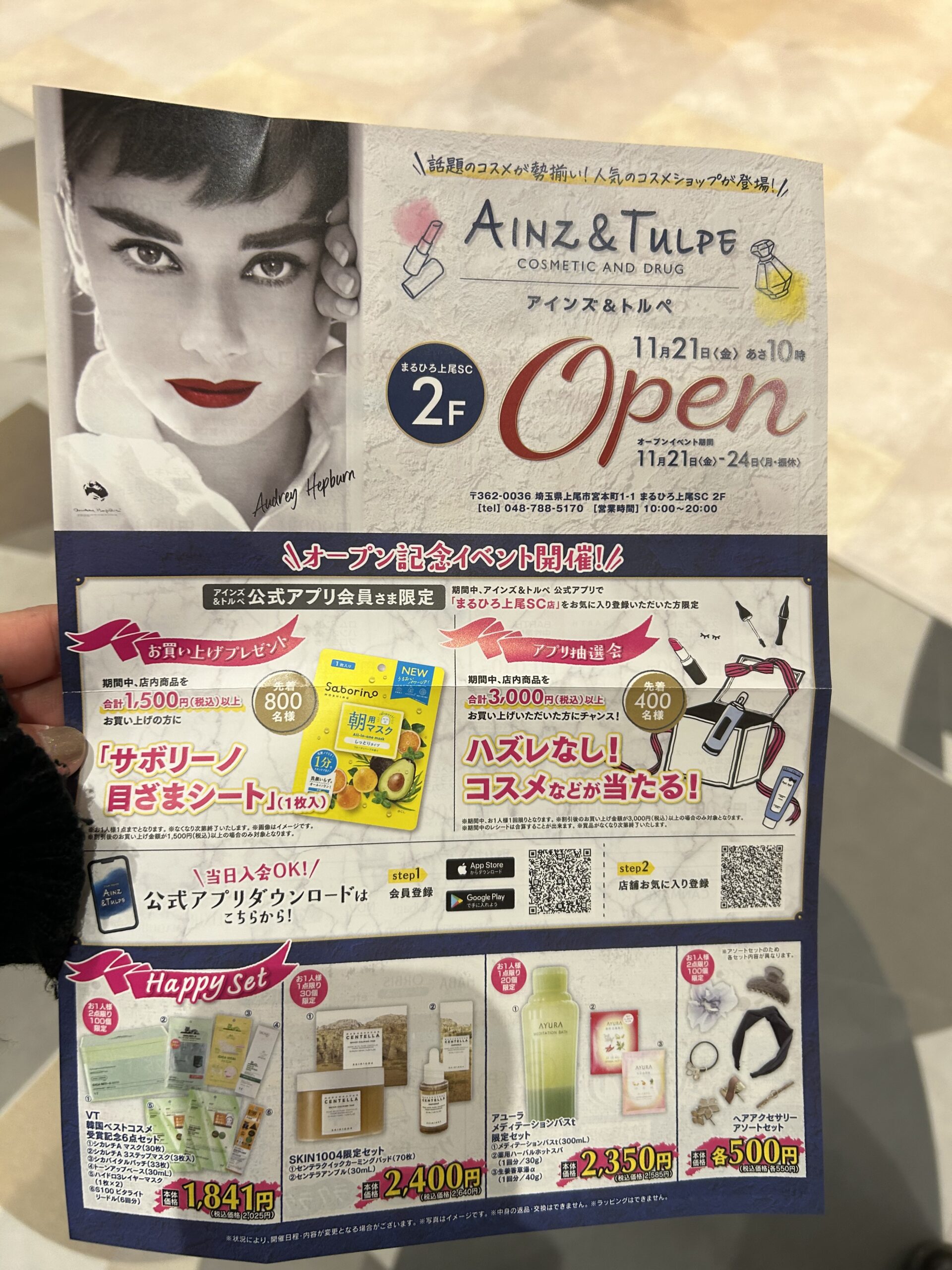 「アインズ&トルペ」公式アプリ会員様限定、オープン記念イベントも開催されているのでこの機会にぜひ寄ってみてください。