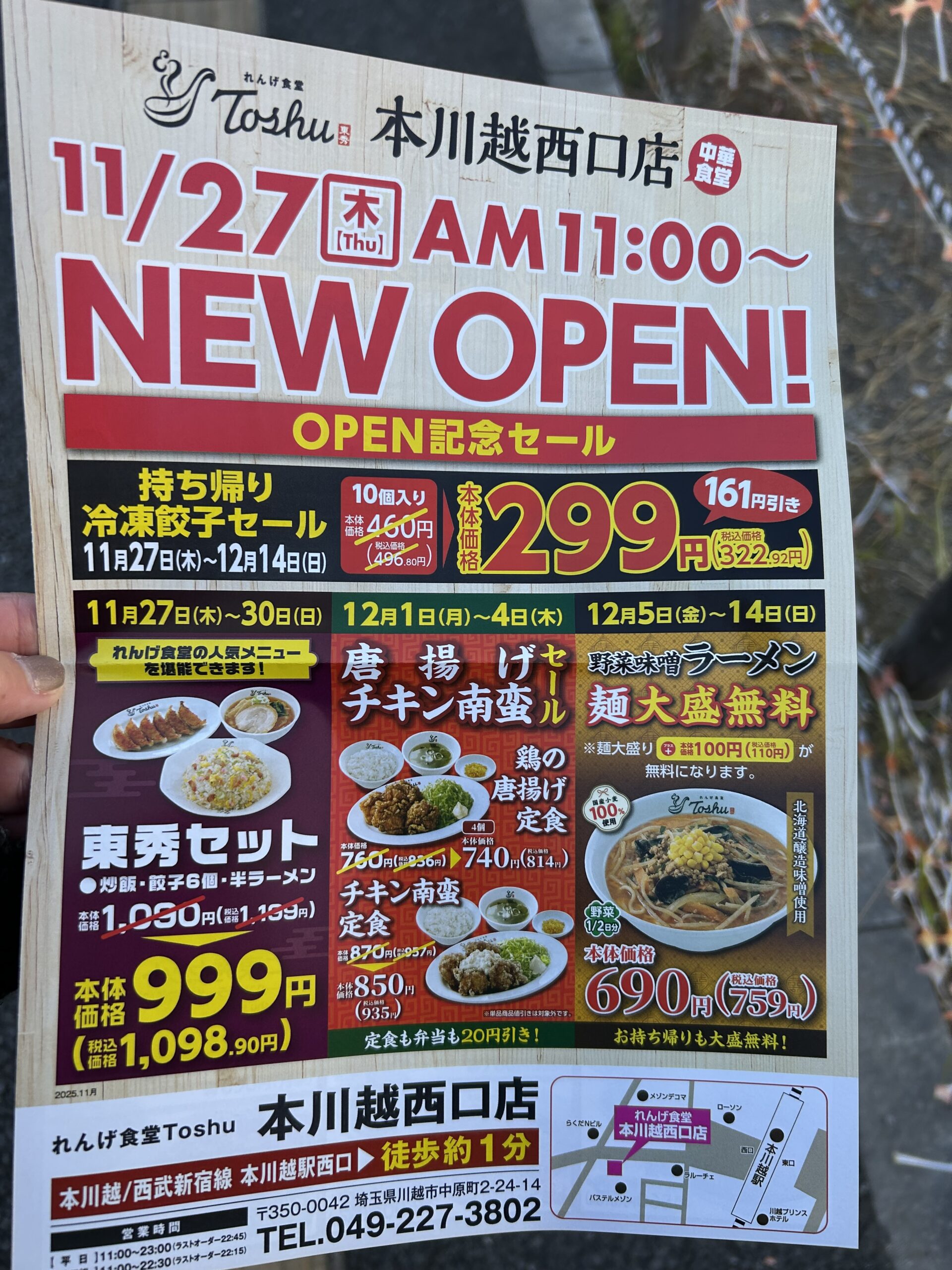 【川越市】いよいよ明日(11月27日)!「れんげ食堂 Toshu 本川越西口店」がオープンします♪