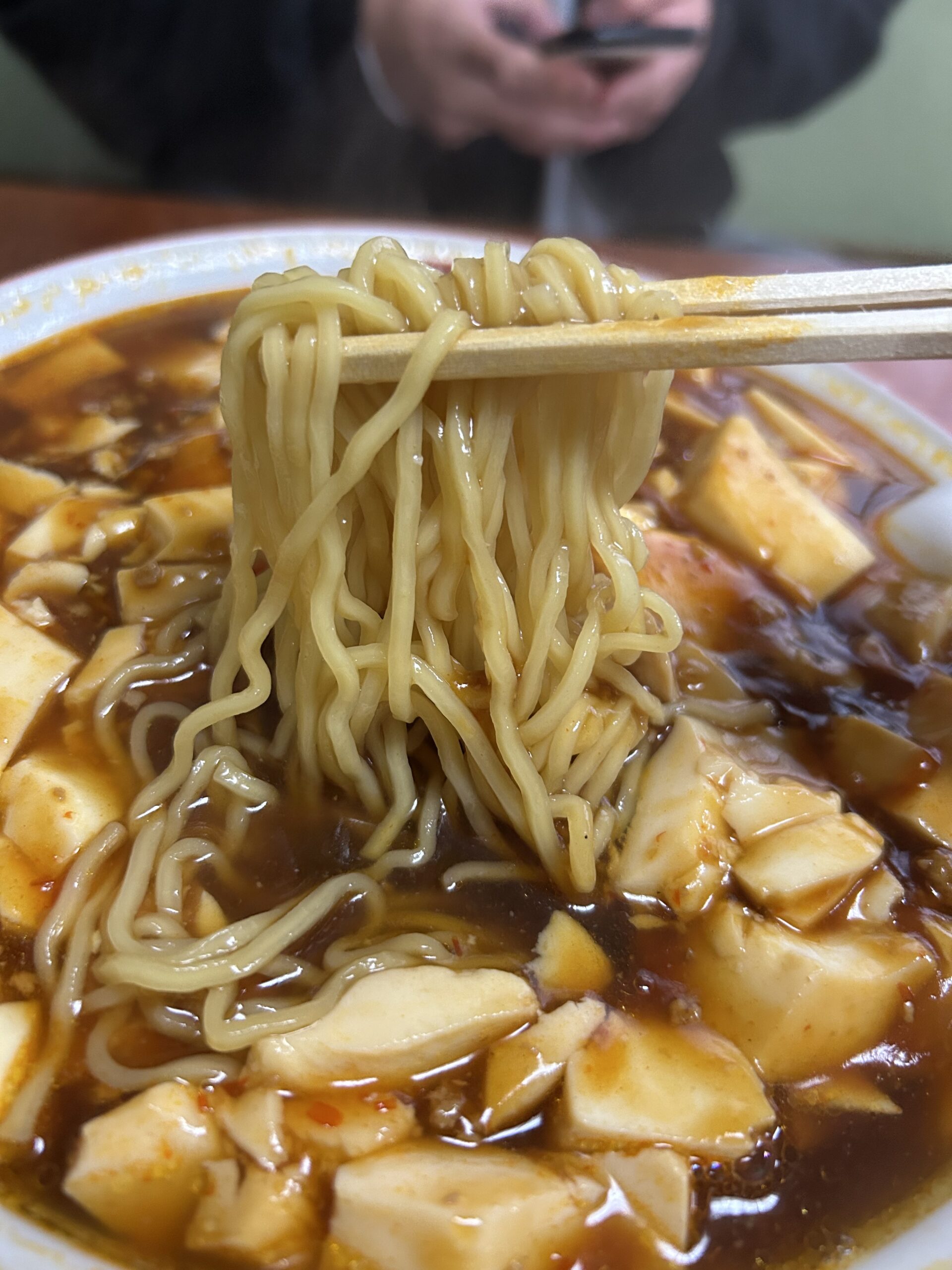 醤油ベースのスープにピリ辛麻婆がのっています。