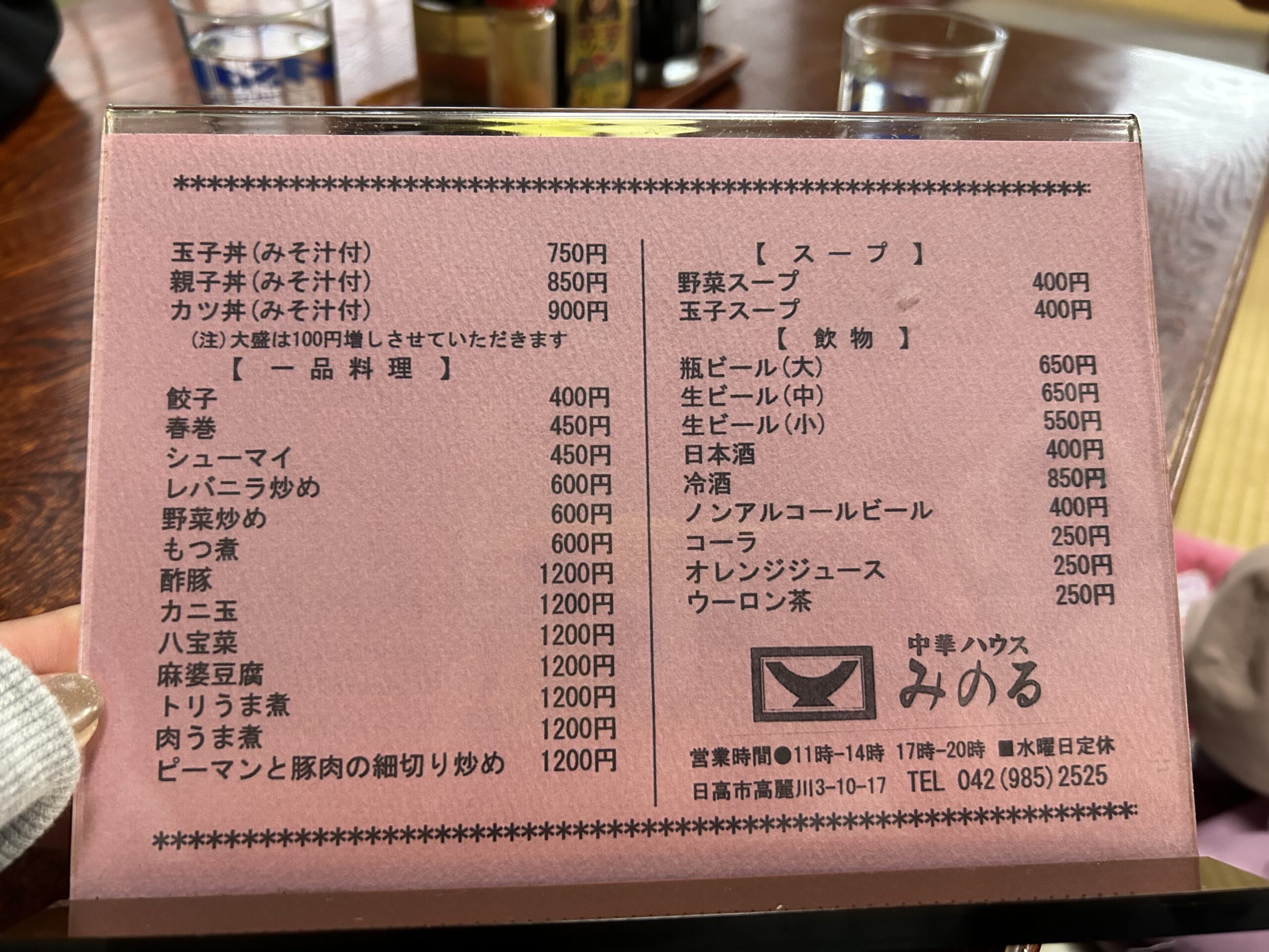 【日高市】「中華ハウスみのる」に行ってきました!メニューはこんな感じ♪