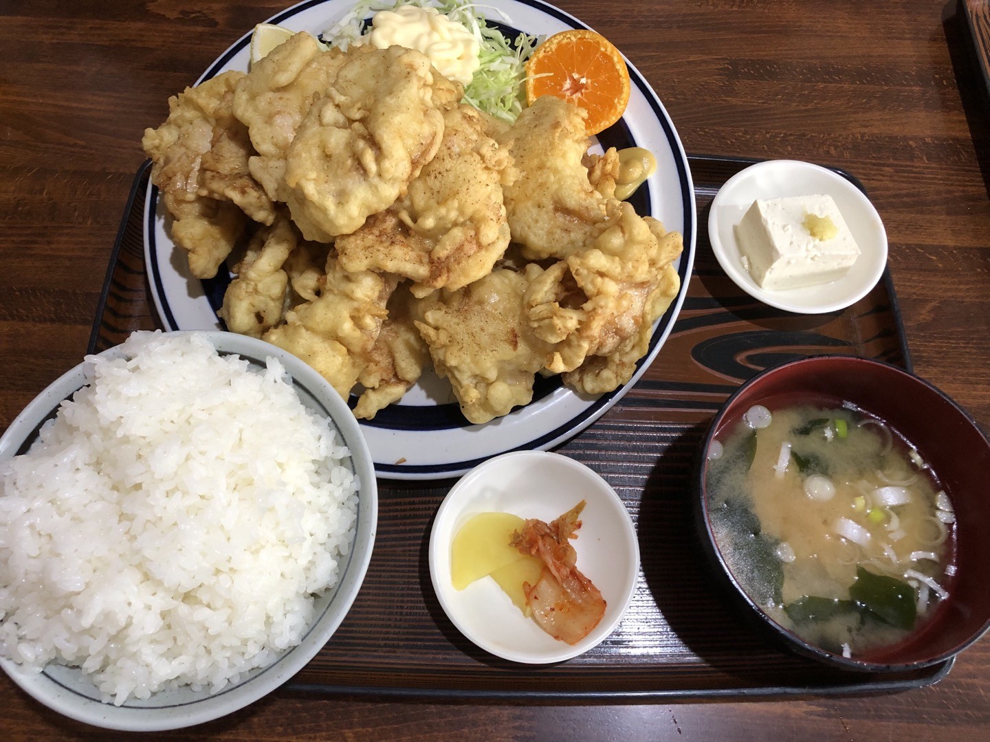 以前食べた「唐揚げ定食」の写真とレポも貼っておきます。