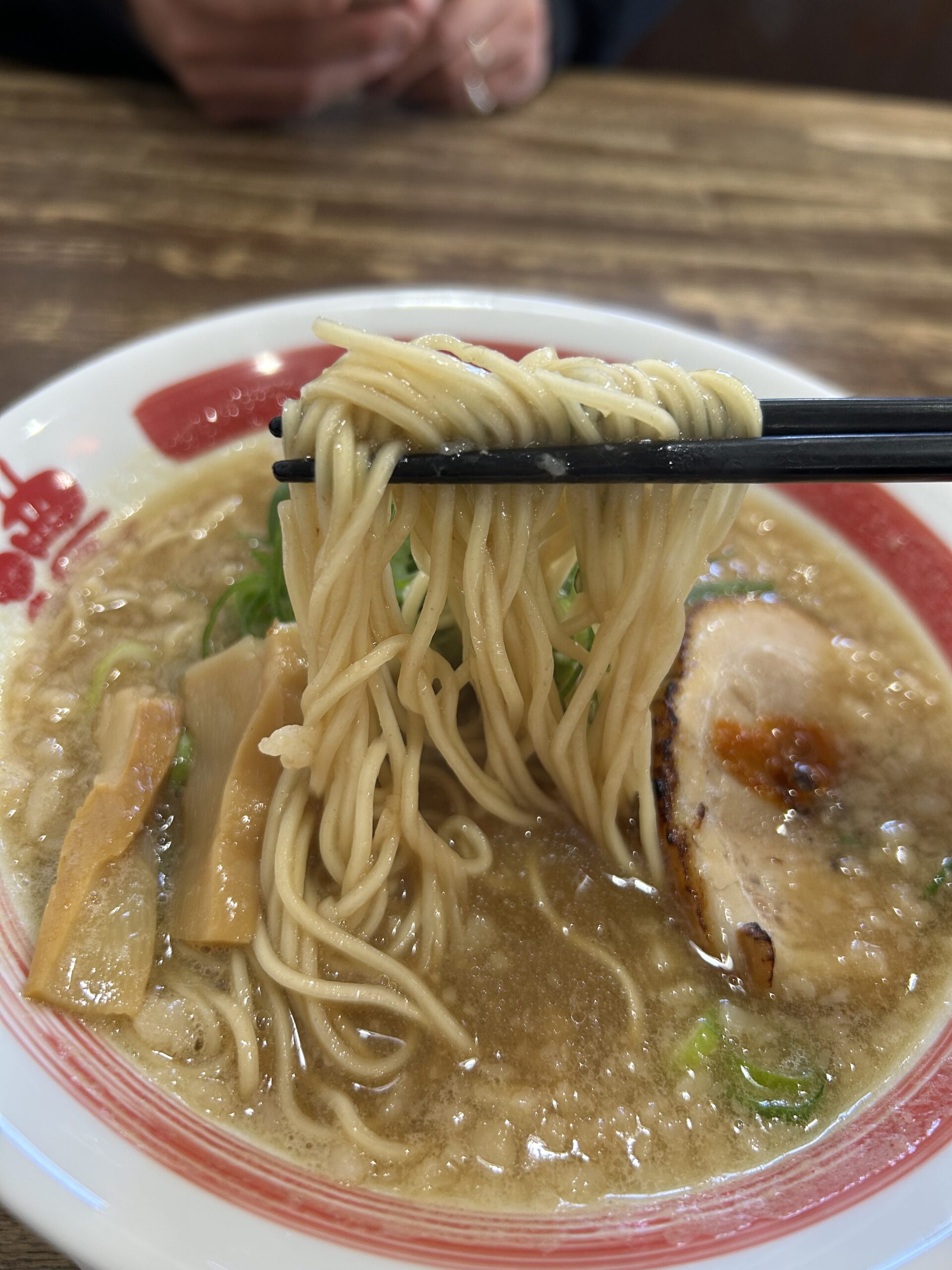 背脂たっぷりでコクがしっかり、こってりしていて濃厚なスープなのに飲み干せる美味しさになっています♪