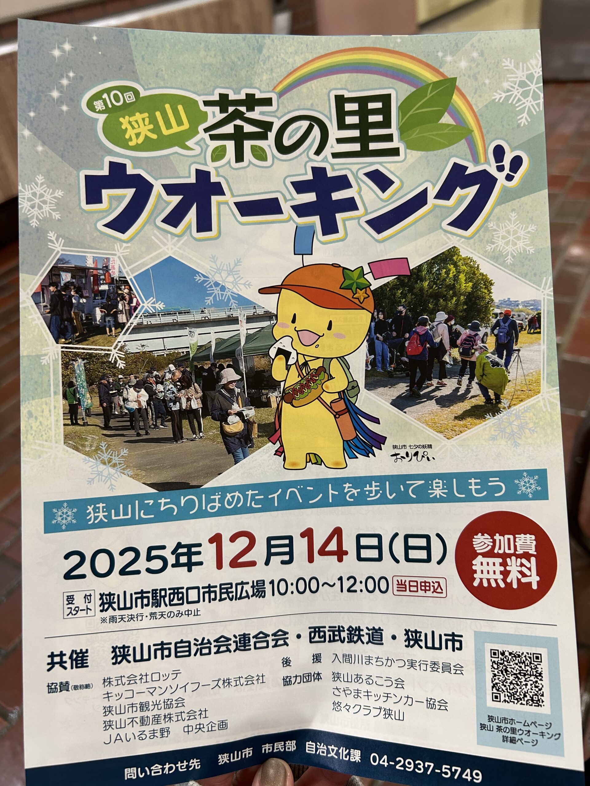 「狭山 茶の里ウォーキング」は12月14日に開催されます。