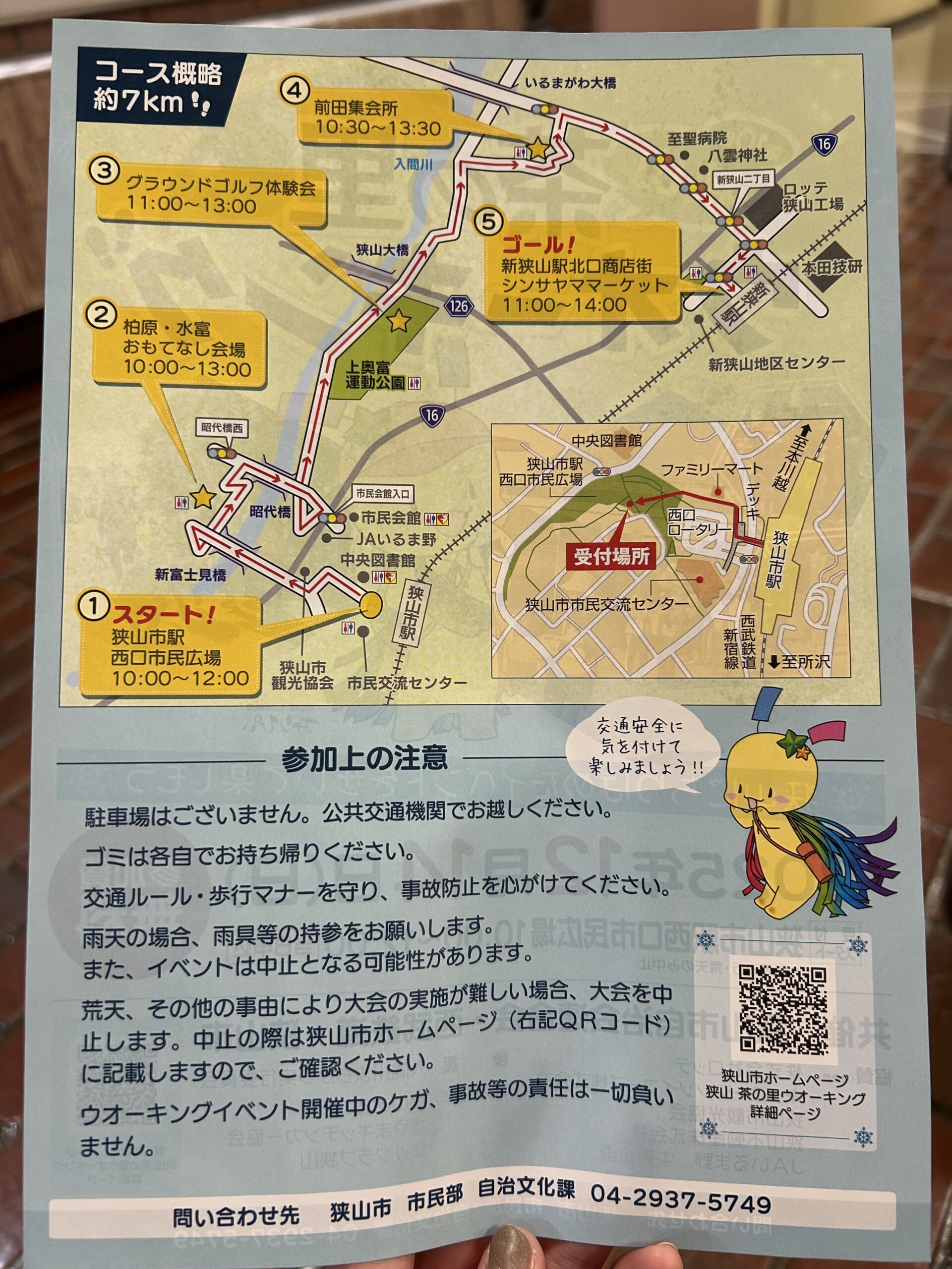 コース:狭山市駅西口市民広場(受付会場)→ →柏原・水富会場(入間川河川敷)→前田集会所 →新狭山北口商店街 →新狭山駅
