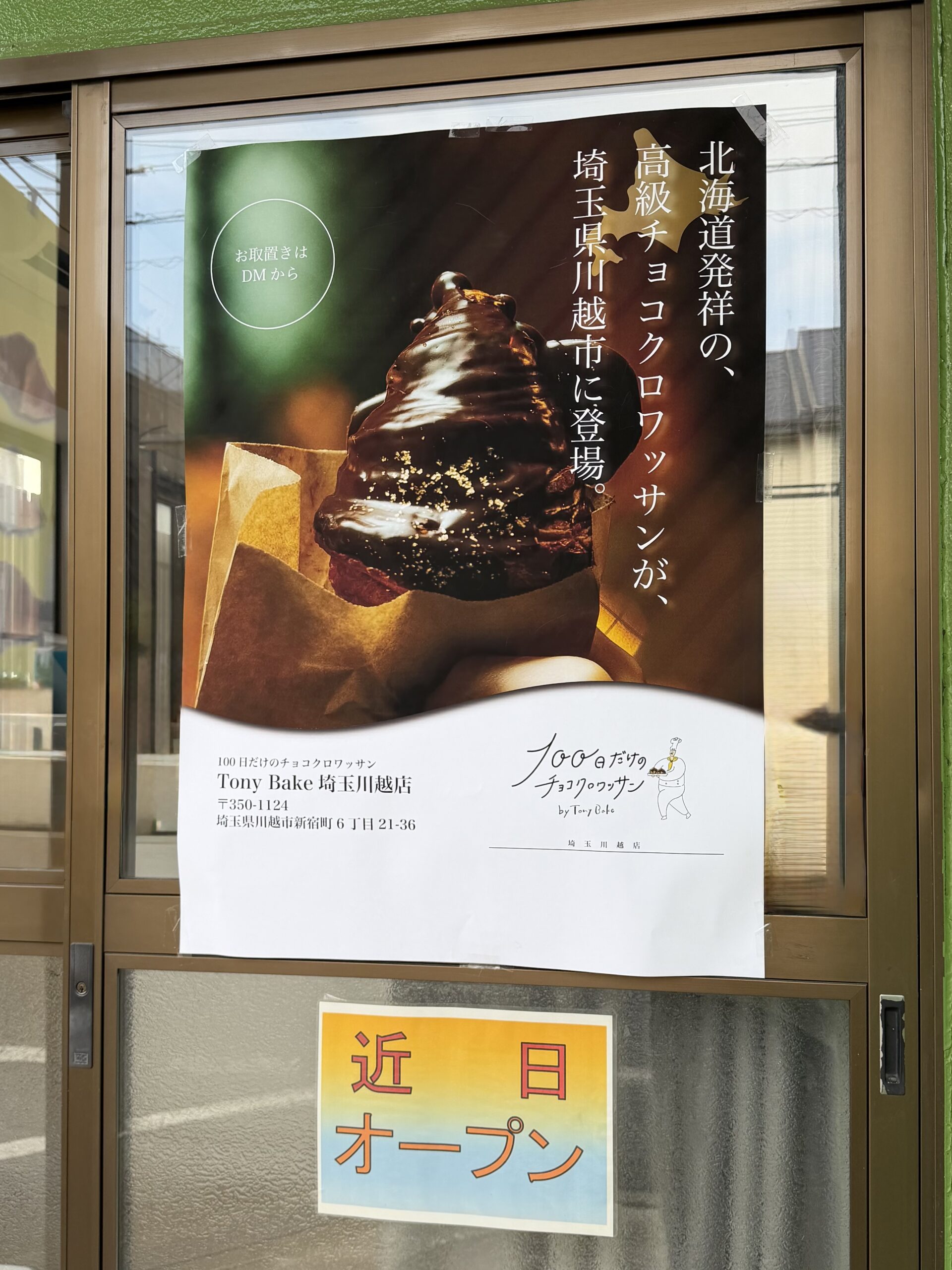 今回は、川越にオープンする「100日だけのチョコクロワッサン by Tony Bake (トニーベイク) 埼玉川越店」の情報です。