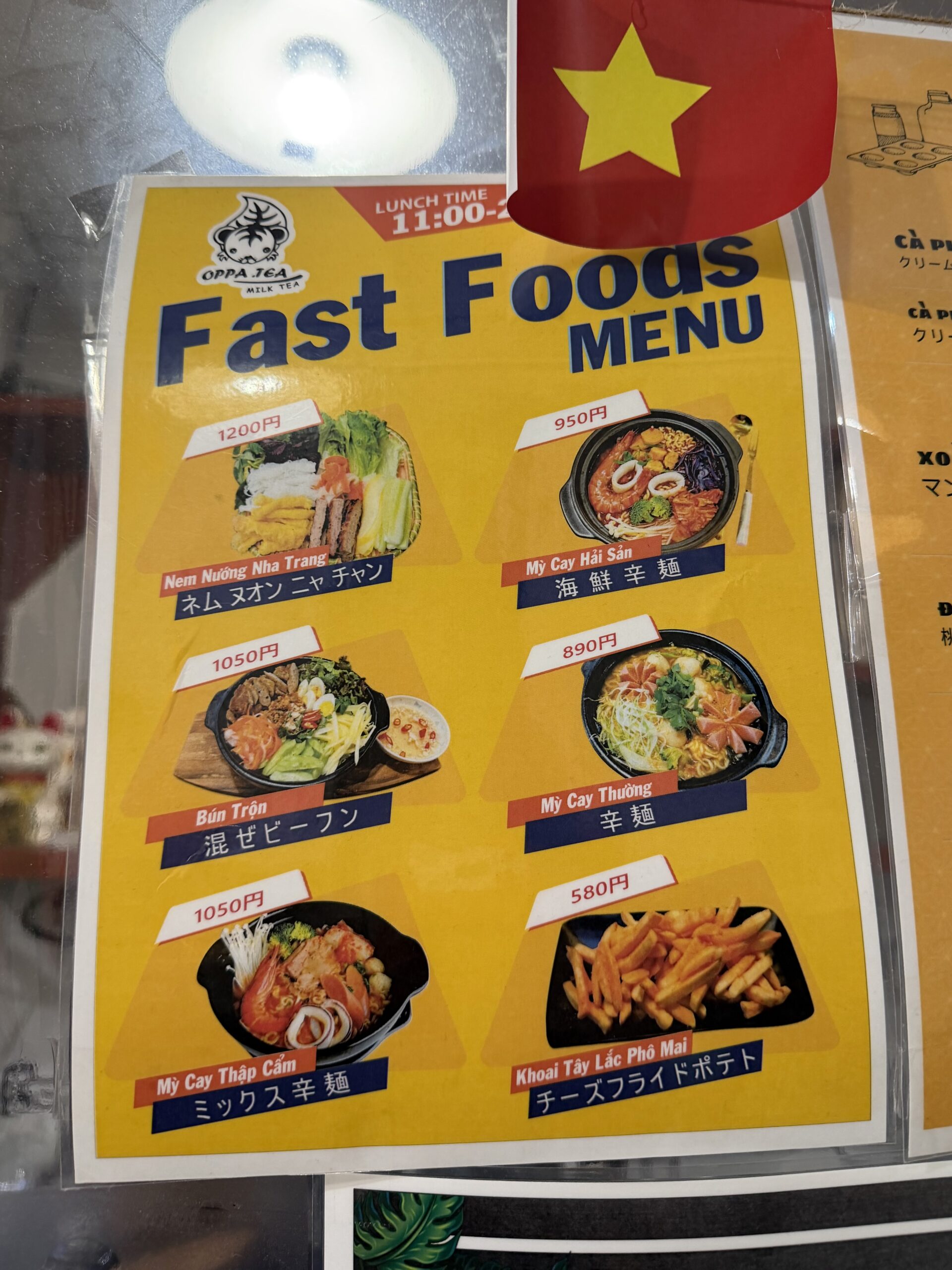 バインミーや辛麺、タピオカドリンクまでメニューは豊富にあります。