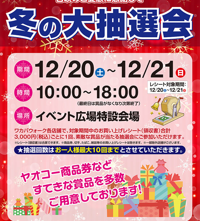 冬の大抽選会!は12月20日と12月21日の2日間の開催となります。