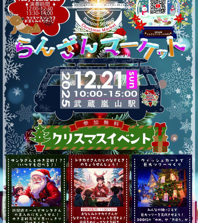 「雪合戦!?新聞紙ボールで玉入れ」「トナカイからの謎解き」「巨大ツリーつくり」などクリスマスを楽しむ参加無料イベントが盛りだくさん!。