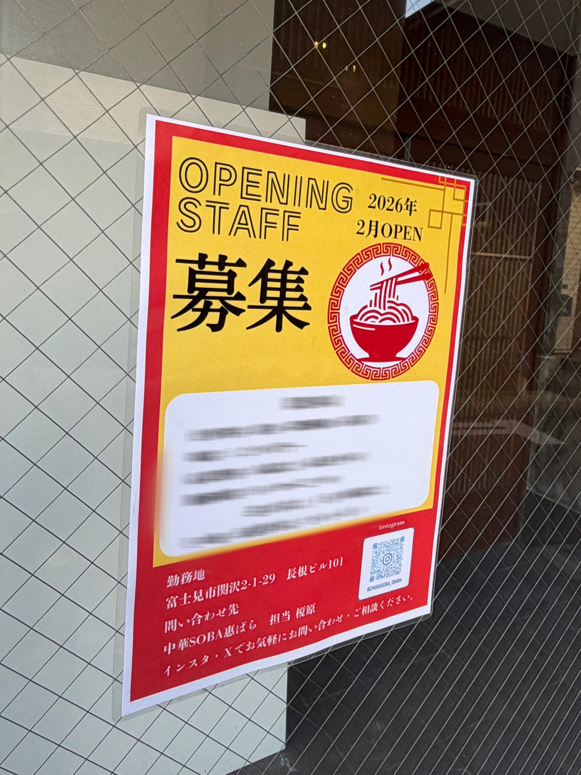 下赤塚の人気店「中華SOBA惠ばら」の新店が2026年2月にオープンします!