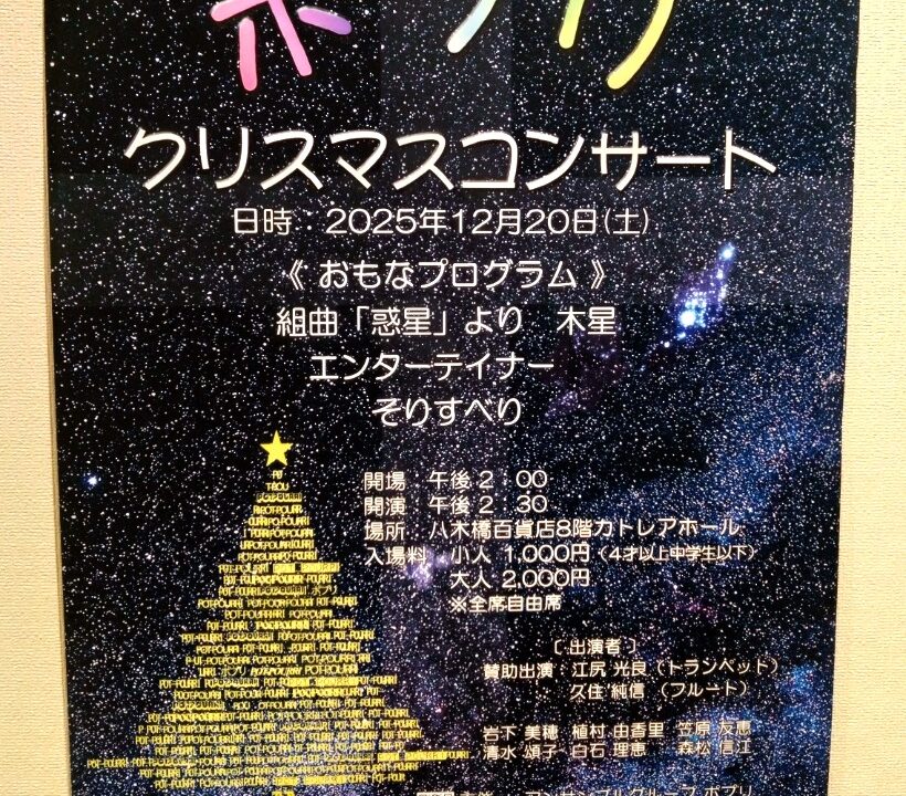 「ポプリ」が奏でる美しい音楽で、ひと足早いクリスマス気分を満喫しませんか?