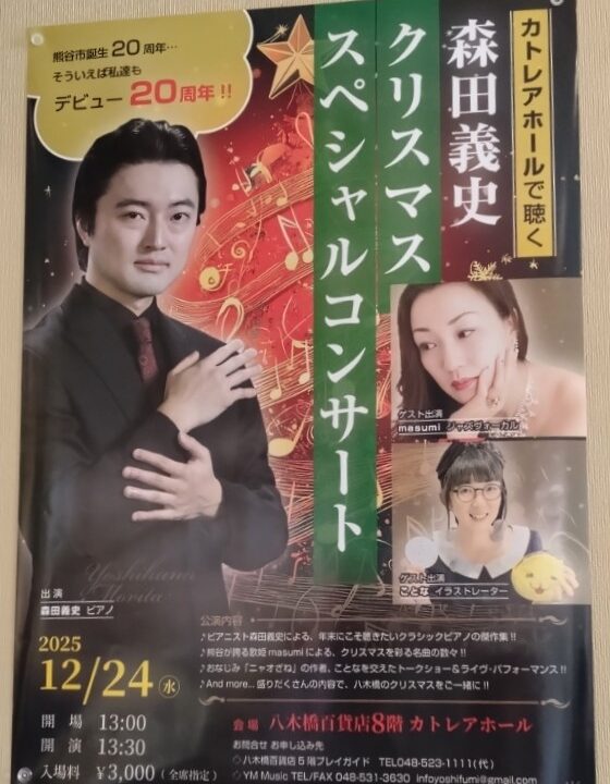 毎年恒例となっている、ピアニスト森田義史さんによるクリスマスコンサートが今年も開催されます!