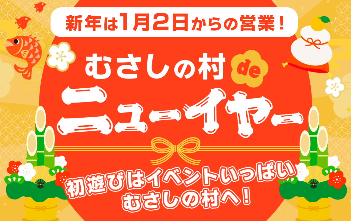 今回は、加須市にある「緑の中のファミリーランド むさしの村」から、お正月気分を満喫できるワクワクなイベント情報をお届けします!