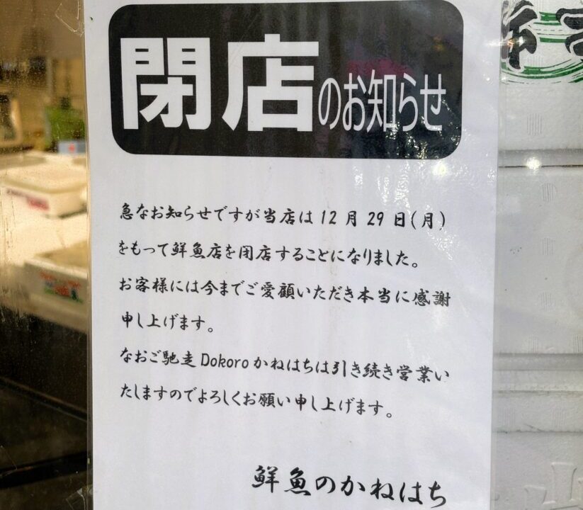 以上鮮魚のかねはち閉店の情報でした!